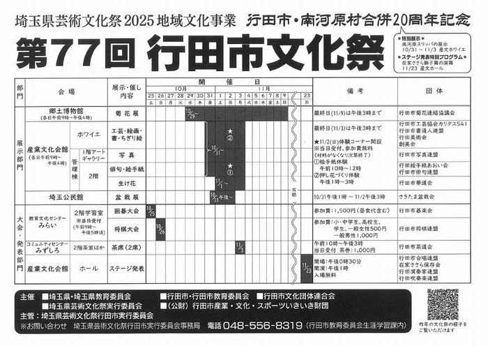 「行田市文化祭」・「上尾芸術文化祭」